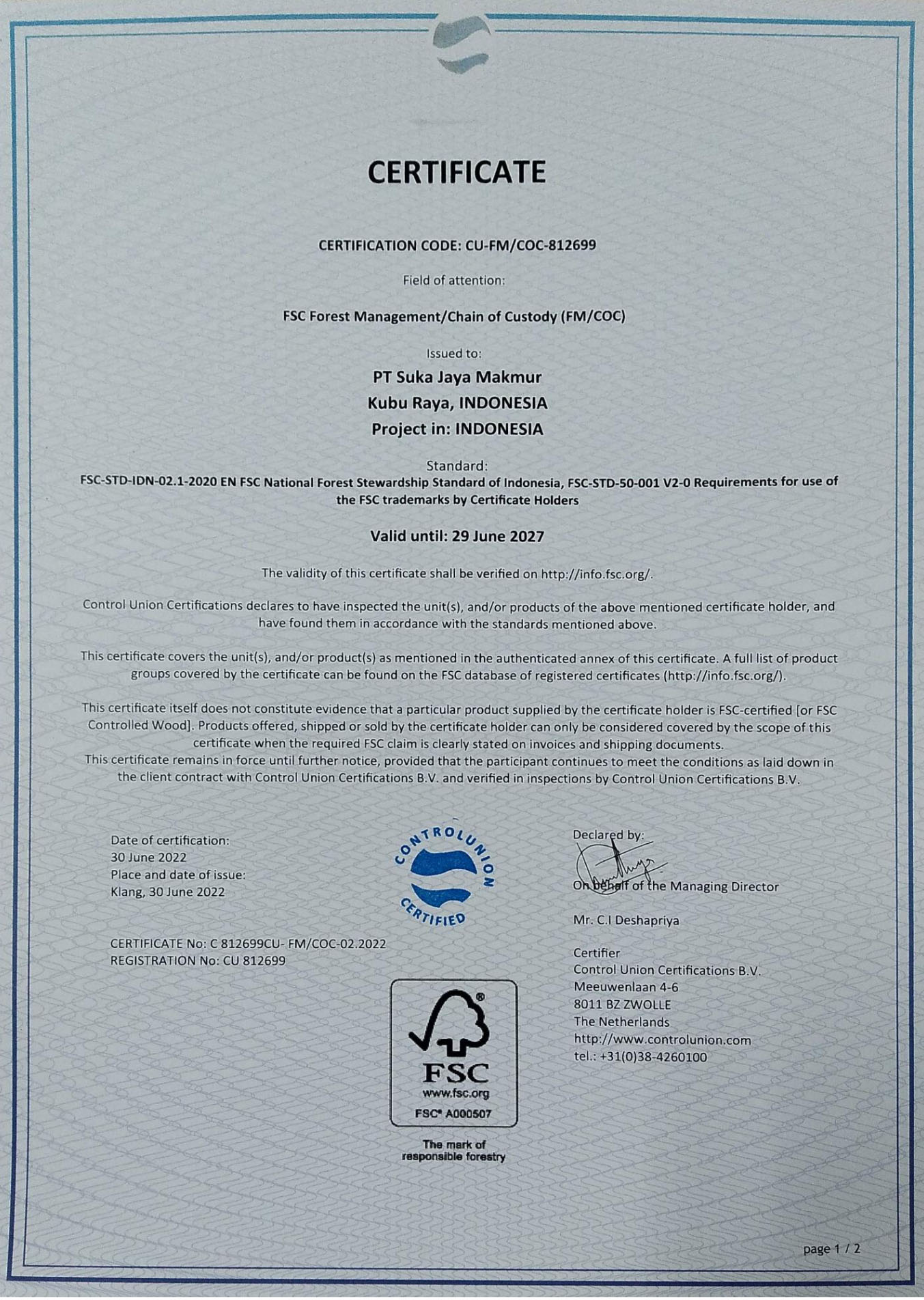 b. Sertifikat FSC